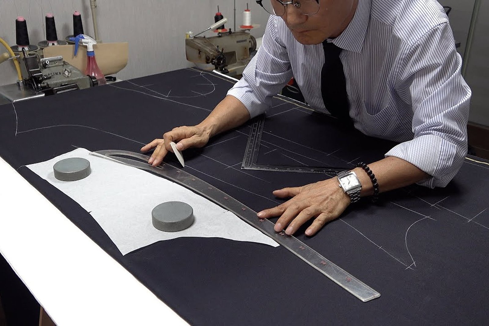 Your journey begins on paper, where chalk meets intention and quiet focus fills the room. A pattern is drawn solely for you, guided by posture, balance, and natural stance. This first outline becomes the soul of the garment, shaping every line that follows and setting the rhythm for a men bespoke suit that feels composed and confidently understated from its earliest form.